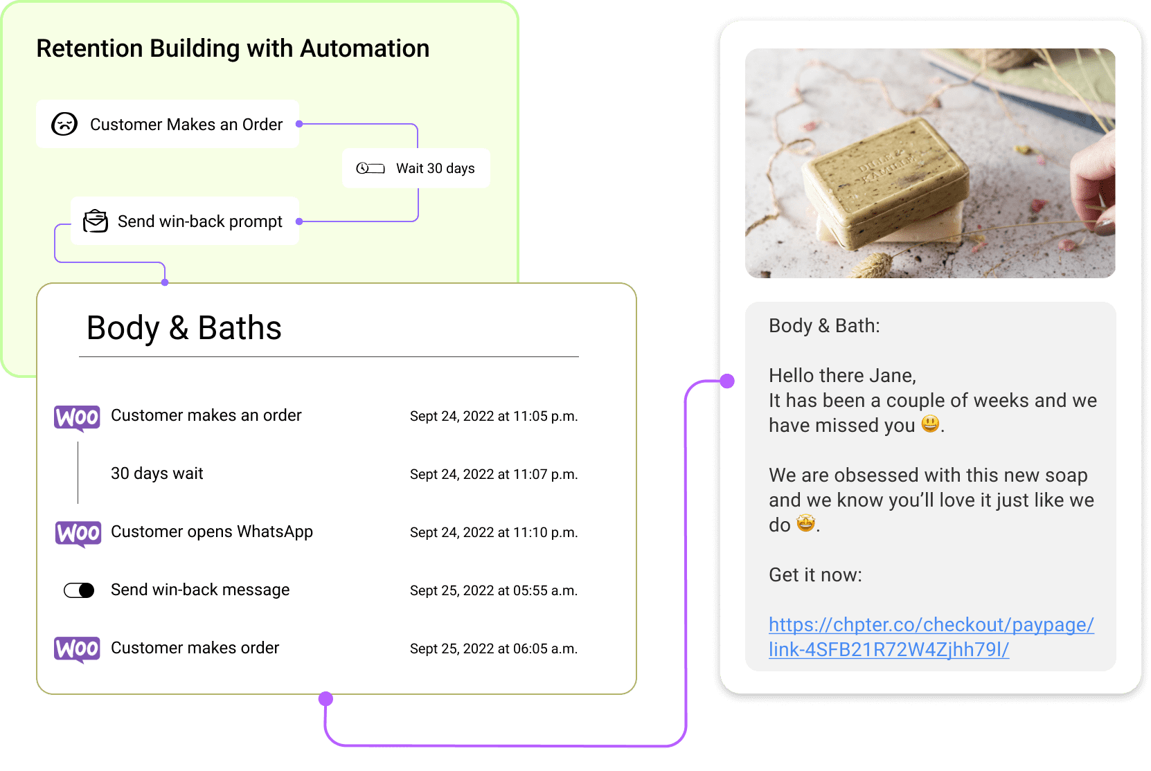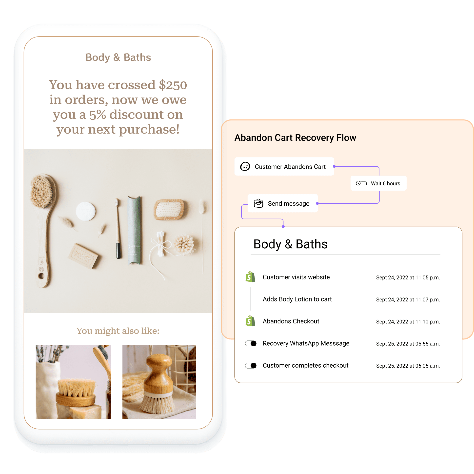 Effortlessly sync both your historical and live data on Shopify + WooCommerce with just one click.Once chpter. is live, you can setup automated flows on WhatsApp + SMS and start making more revenue 💸!