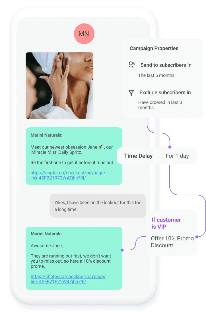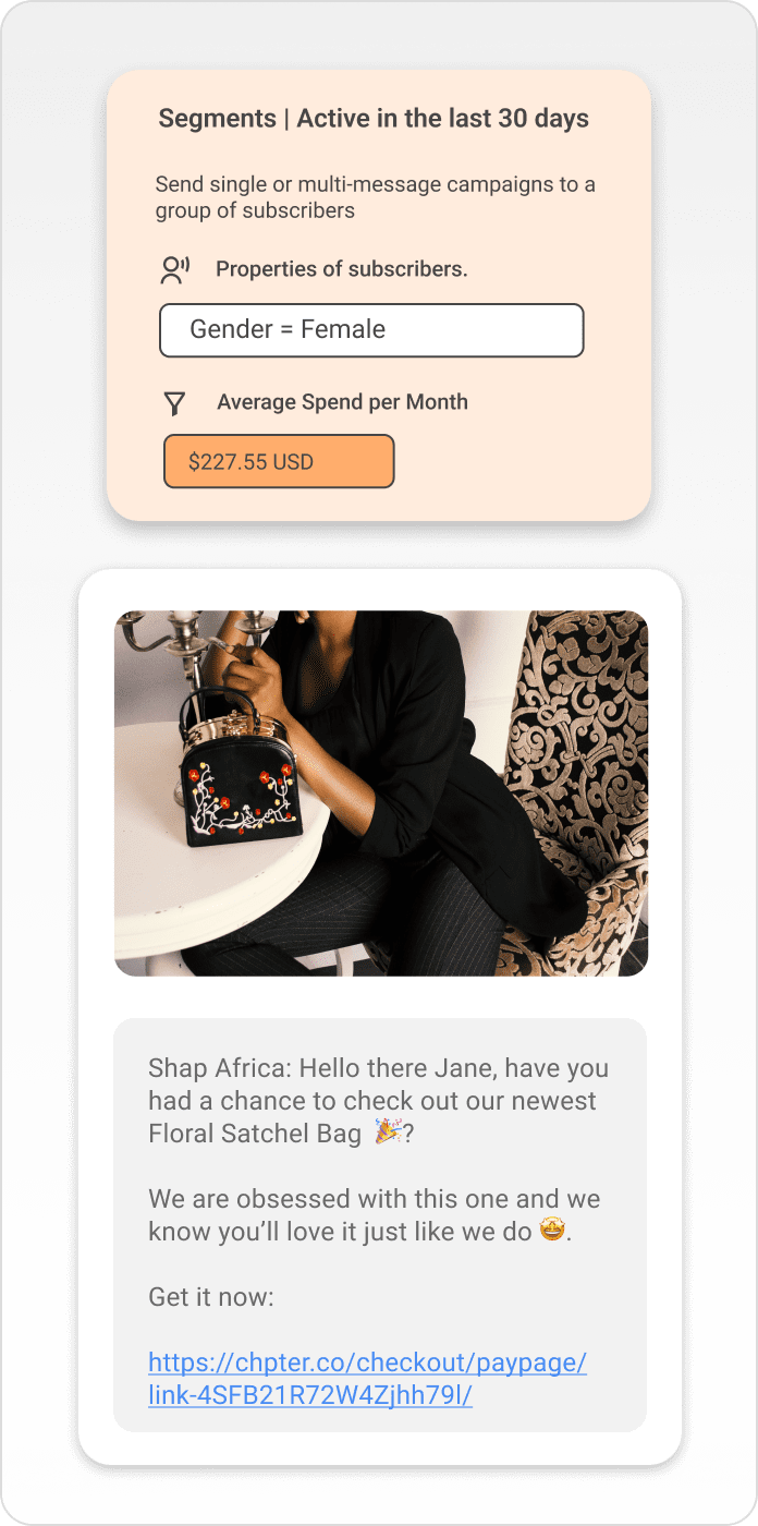 Highly personalised campaigns for SMS + WhatsApp 💬 to drive more engagement and convert sales💰 .