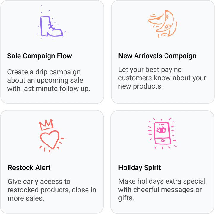 Coming up with campaigns 📣 that convert from scratch can be hard.Choose from our countless templates that drive high engagement and conversion 💸!