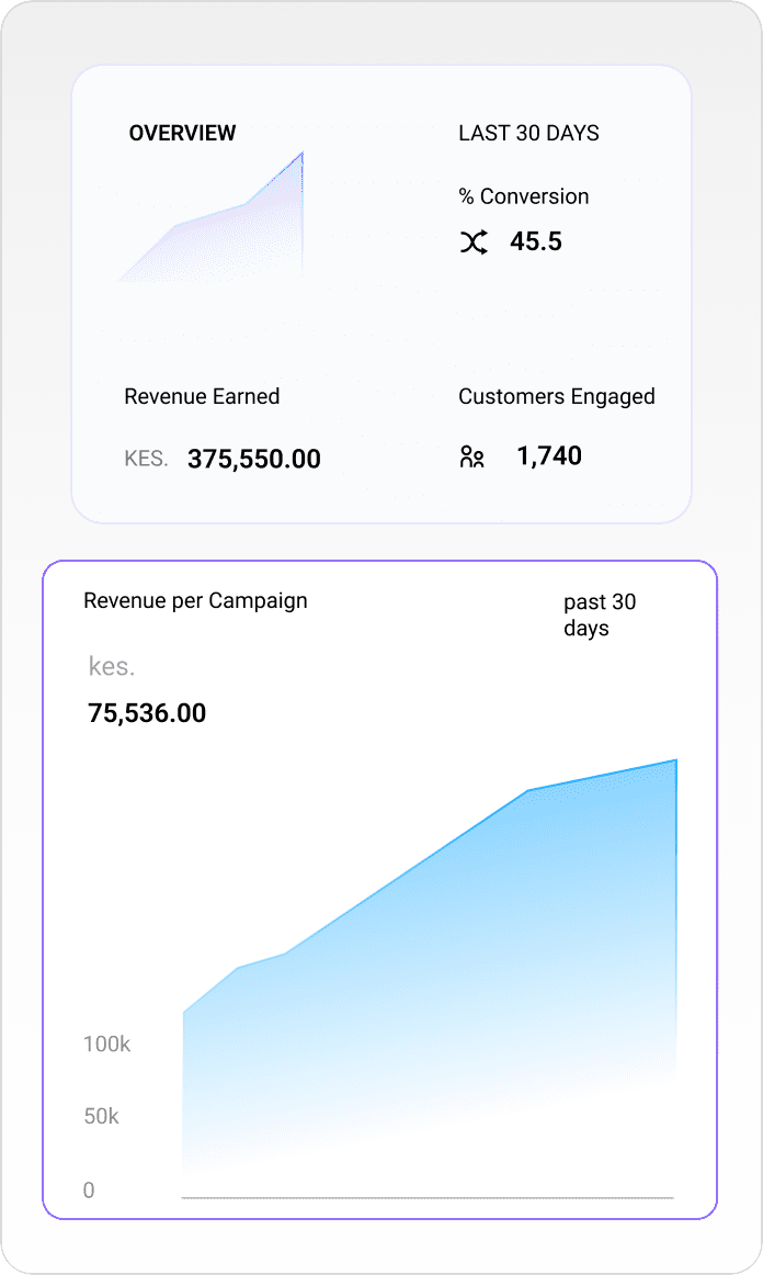 Explore templatesIt can be difficult to track whether campaigns are working or not 🎯.Track performance on our dashboard and see the returns on your campaigns 📈!