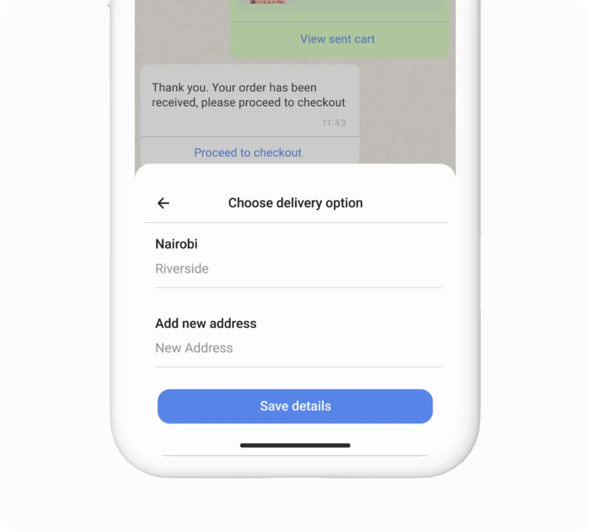 Explore WhatsApp CheckoutGathering and managing delivery information across multiple platforms can be error-prone and inefficient.Simplify order fulfillment with accurate, real-time address updates, ensuring timely deliveries and reducing errors that could impact customer satisfaction.